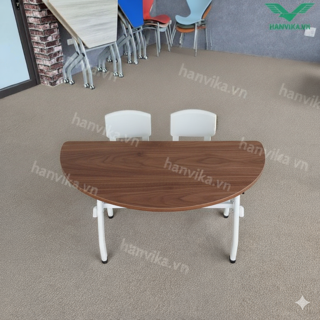 Bàn bán nguyệt đôi Hanvika – Bàn học nhóm gấp gọn linh hoạt cho lớp học và trung tâm đào tạo – HVK-GD-B12