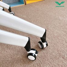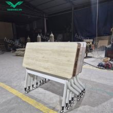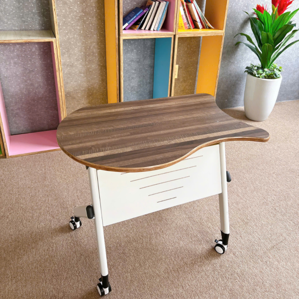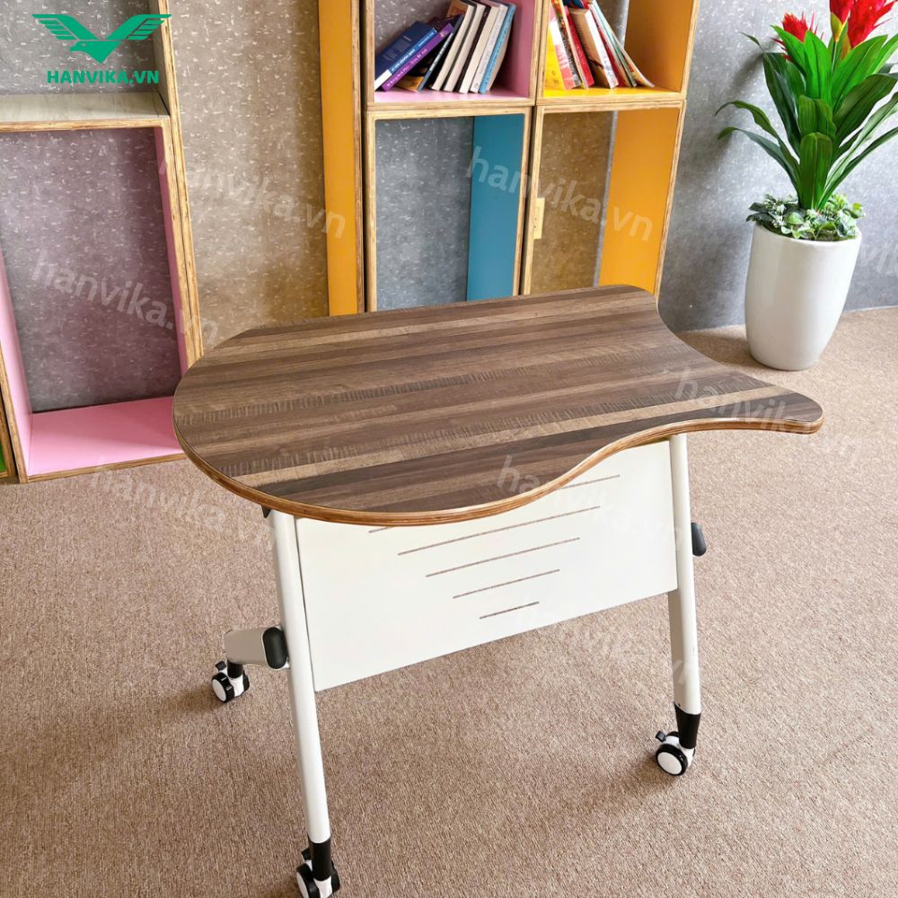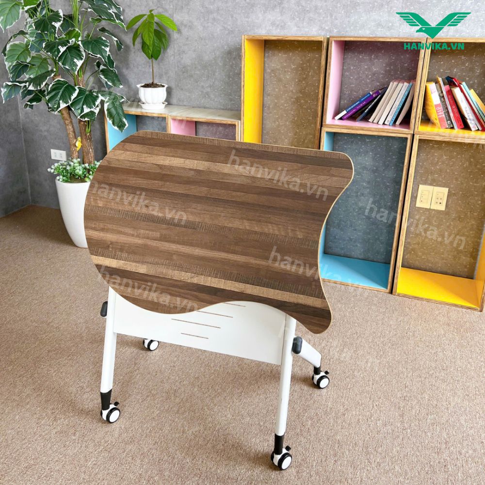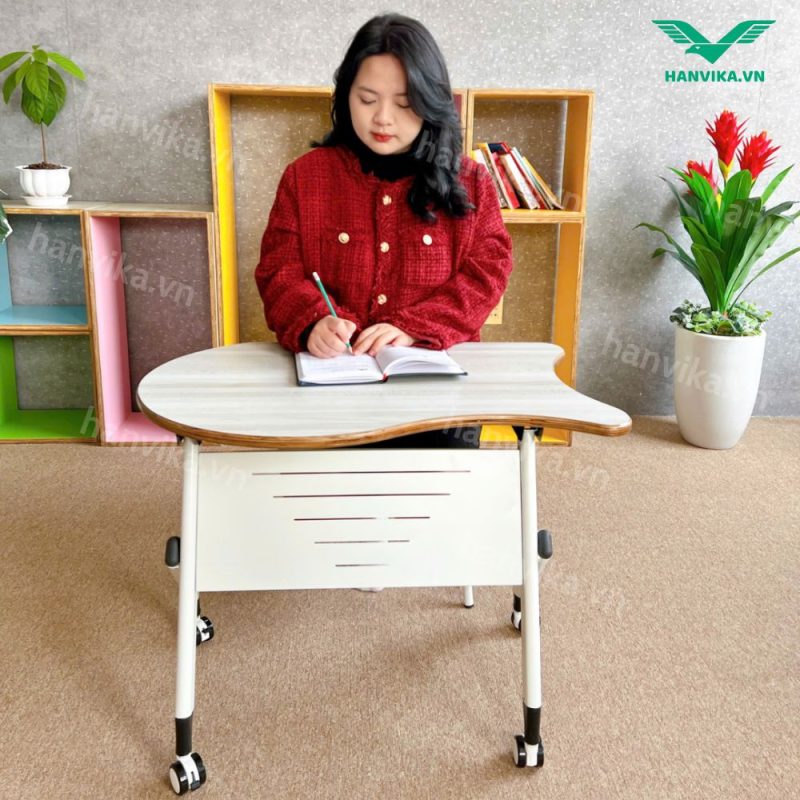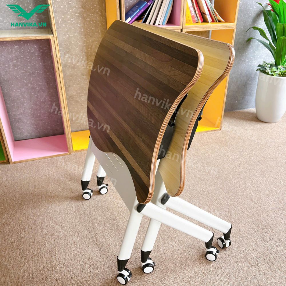 Sản phẩm sở hữu cơ chế gập gọn thông minh bằng lẫy hai bên, bánh xe cao cấp di chuyển nhẹ nhàng, đồng thời chân bàn có thể lồng vào nhau giúp tiết kiệm diện tích tối đa – một lựa chọn hoàn hảo cho những không gian học tập năng động.