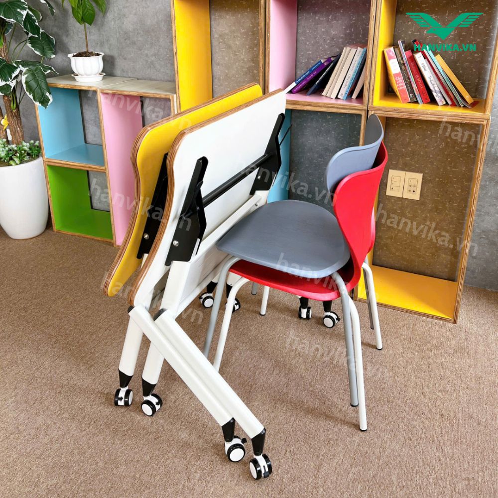🧠 Tối ưu không gian thông minh: Dễ dàng gập gọn – xếp chồng – di chuyển, giúp không gian lớp học luôn gọn gàng và linh hoạt thay đổi bố cục.