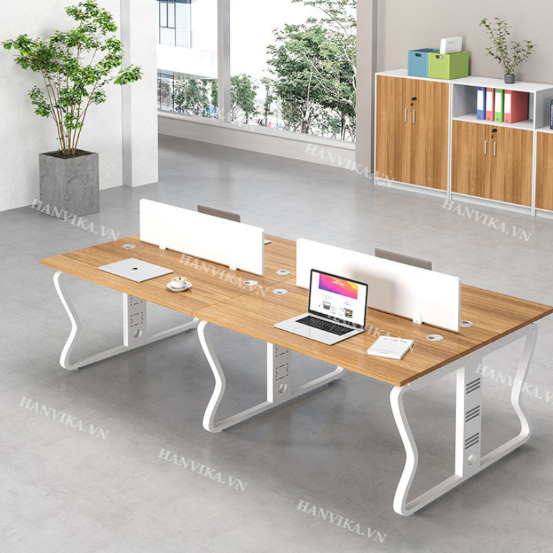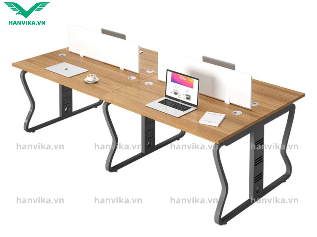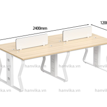 Kích thước: Dài 2m4 (mỗi cụm 1m2), rộng 1m2, cao 75cm – phù hợp 4 người ngồi làm việc đối diện.