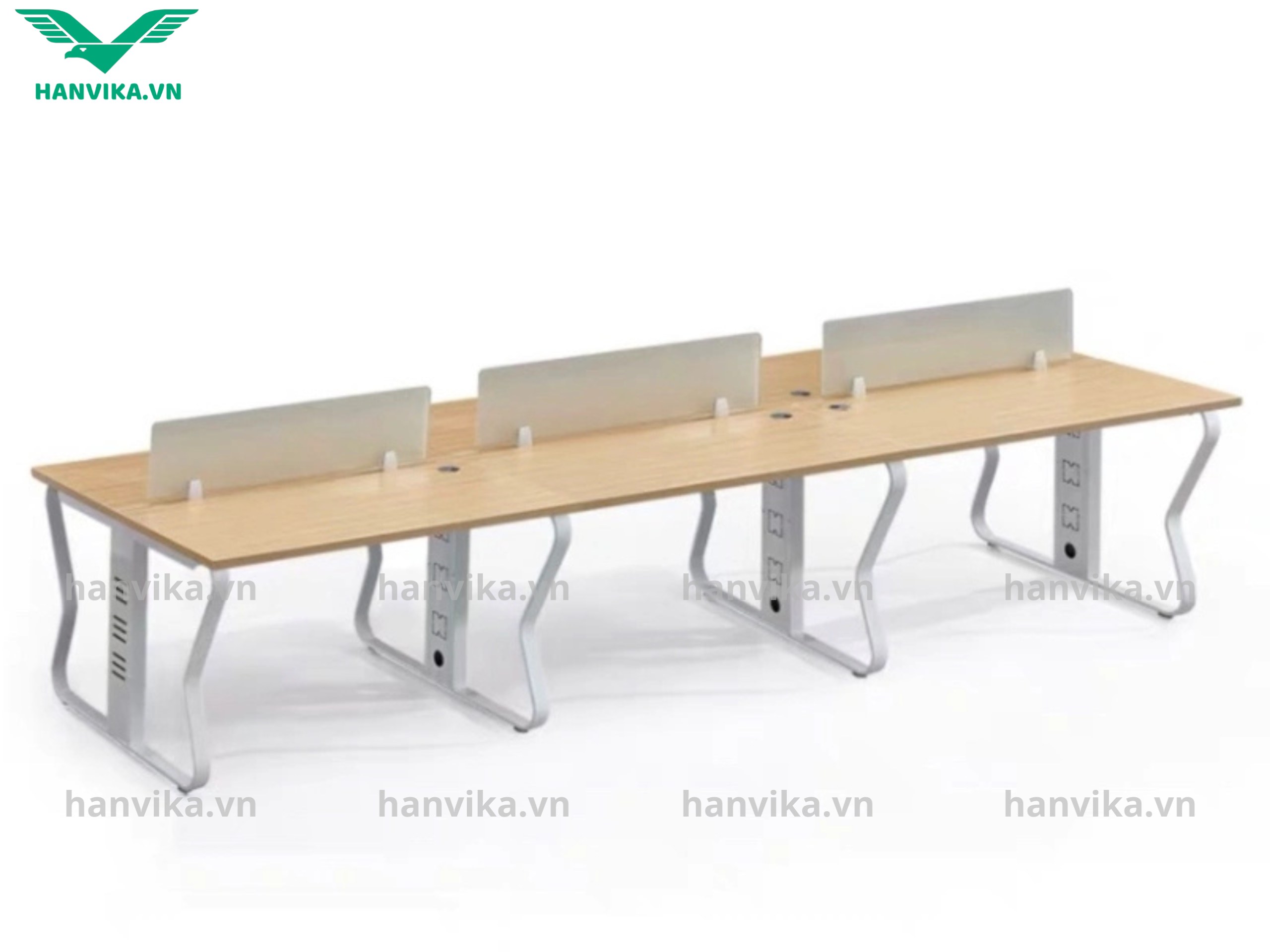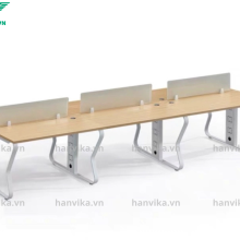 Bàn làm việc được thiết kế dạng cụm 4 chỗ, chia thành 2 cụm đối diện nhau, mang đến giải pháp tối ưu diện tích cho mọi văn phòng. Kiểu dáng tối giản nhưng tinh tế, giúp không gian làm việc trở nên gọn gàng, khoa học.