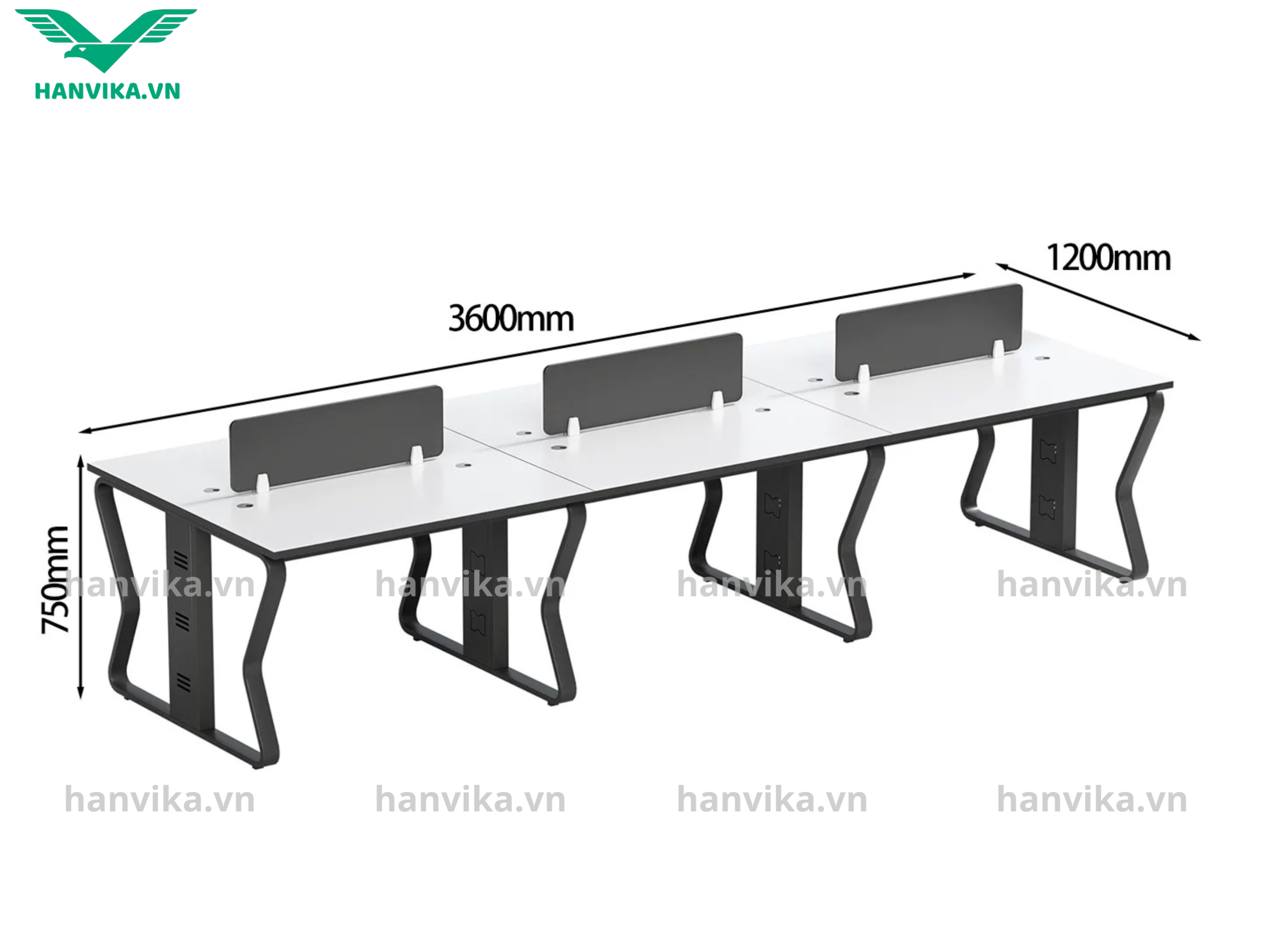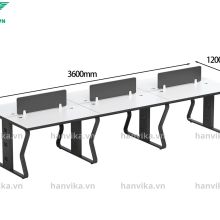 Kích thước: Dài 2m4 (mỗi cụm 1m2), rộng 1m2, cao 75cm – phù hợp 4 người ngồi làm việc đối diện.