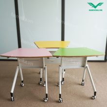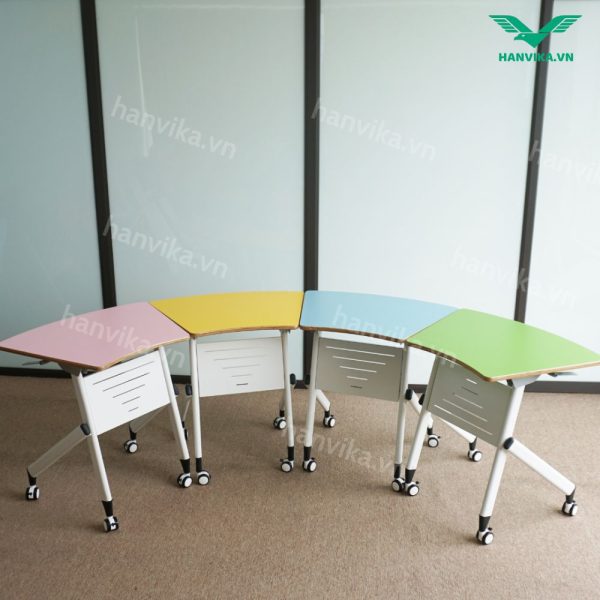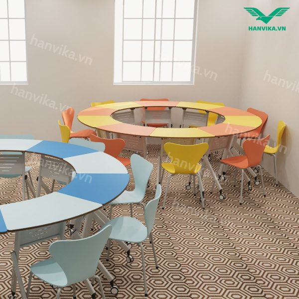 🪑 Tối ưu không gian sử dụng: Nhờ khả năng gấp gọn nhanh và lồng chân bàn vào nhau, sản phẩm đặc biệt phù hợp với các lớp học đa năng, trung tâm ngoại ngữ, đào tạo kỹ năng.