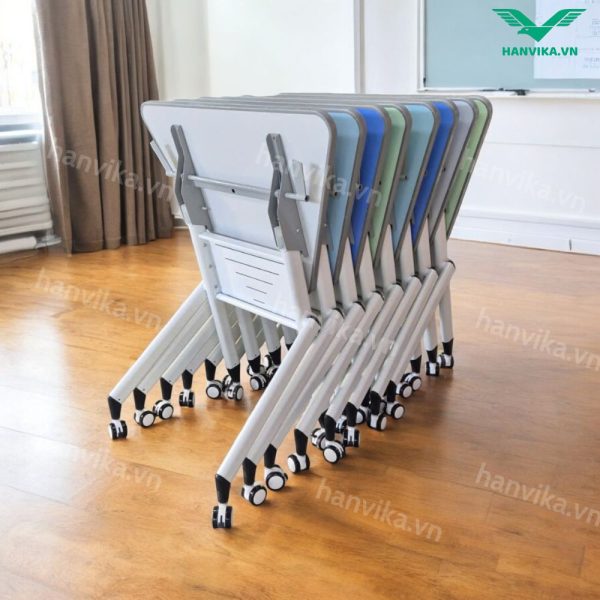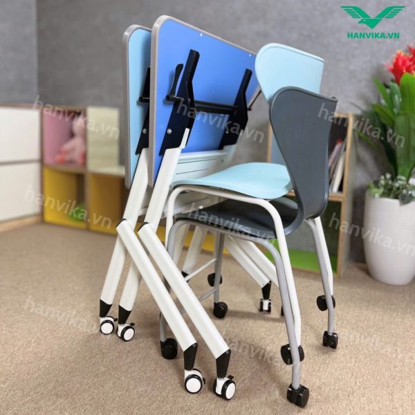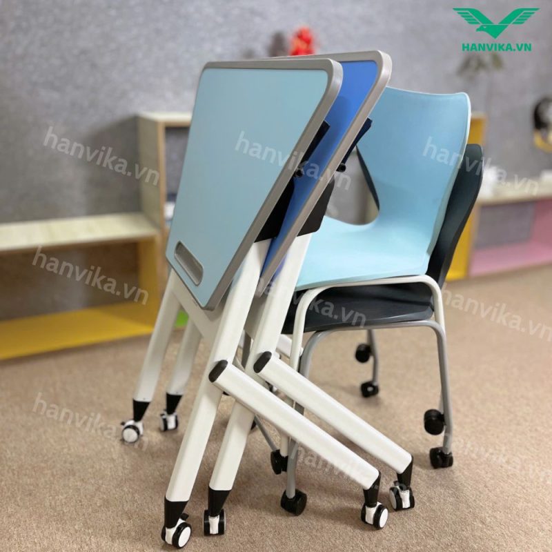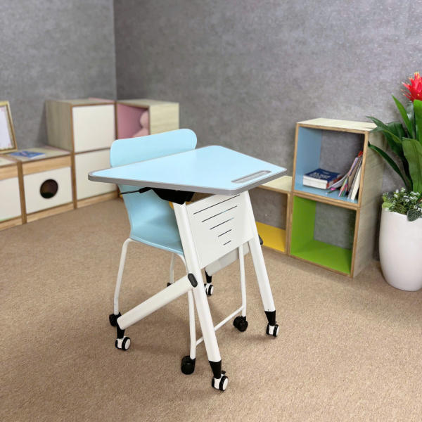 Nhờ bánh xe cao cấp bền bỉ và khả năng lồng chân gọn gàng, sản phẩm mang lại giải pháp linh hoạt – tiết kiệm không gian – hiện đại hóa lớp học.