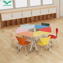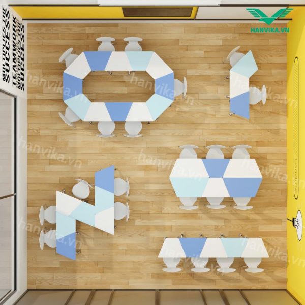 Bàn thang lục giác đơn trung tâm Hanvika – Bàn học nhóm sáng tạo cho lớp học hiện đại – HVK-GD-B08