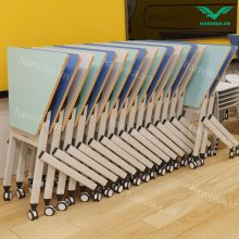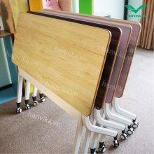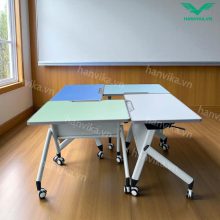 Mỗi bàn được trang bị cơ chế gập mặt bằng lẫy hai bên, giúp thao tác nhanh, gập mở linh hoạt, thuận tiện cho việc dọn dẹp hoặc thay đổi bố cục lớp học.
