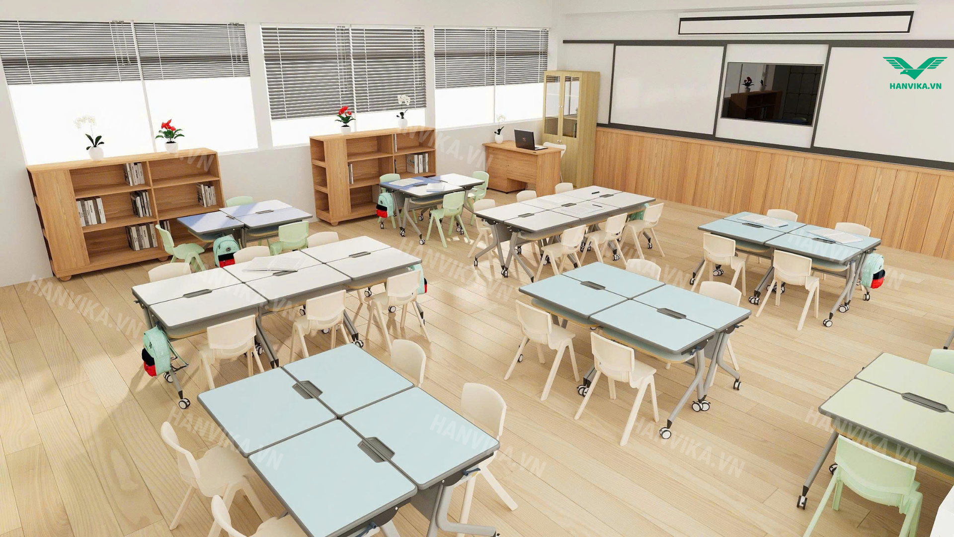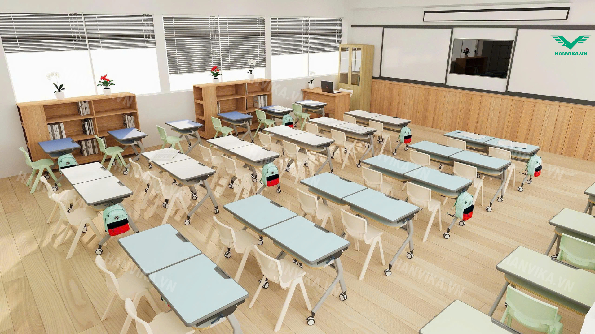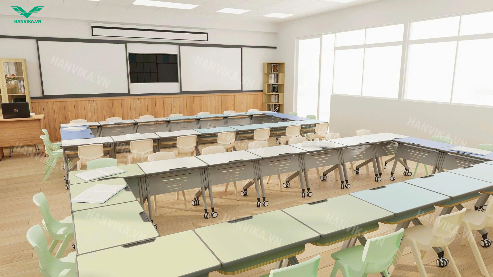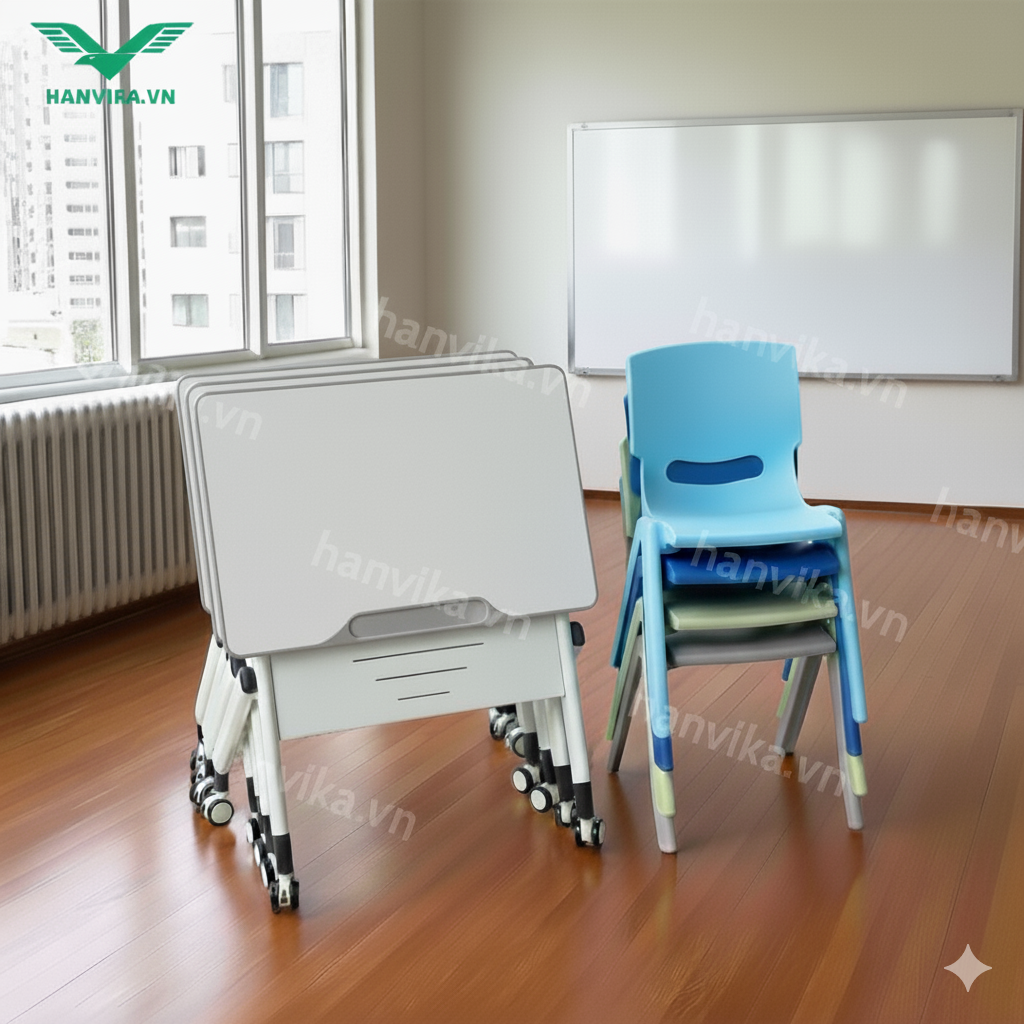 Sản phẩm được Hanvika nghiên cứu và sản xuất với tiêu chí bền – đẹp – tiện dụng – tiết kiệm không gian, phù hợp cho môi trường học tập, giảng dạy, văn phòng, trung tâm đào tạo hoặc khu vực làm việc linh hoạt.