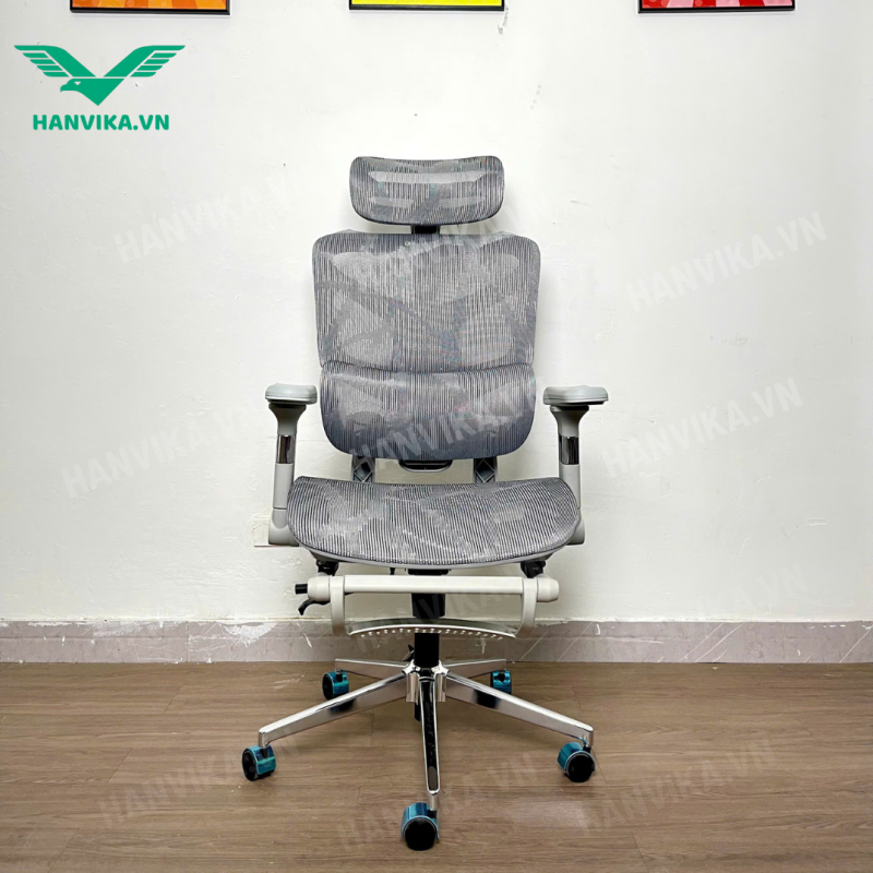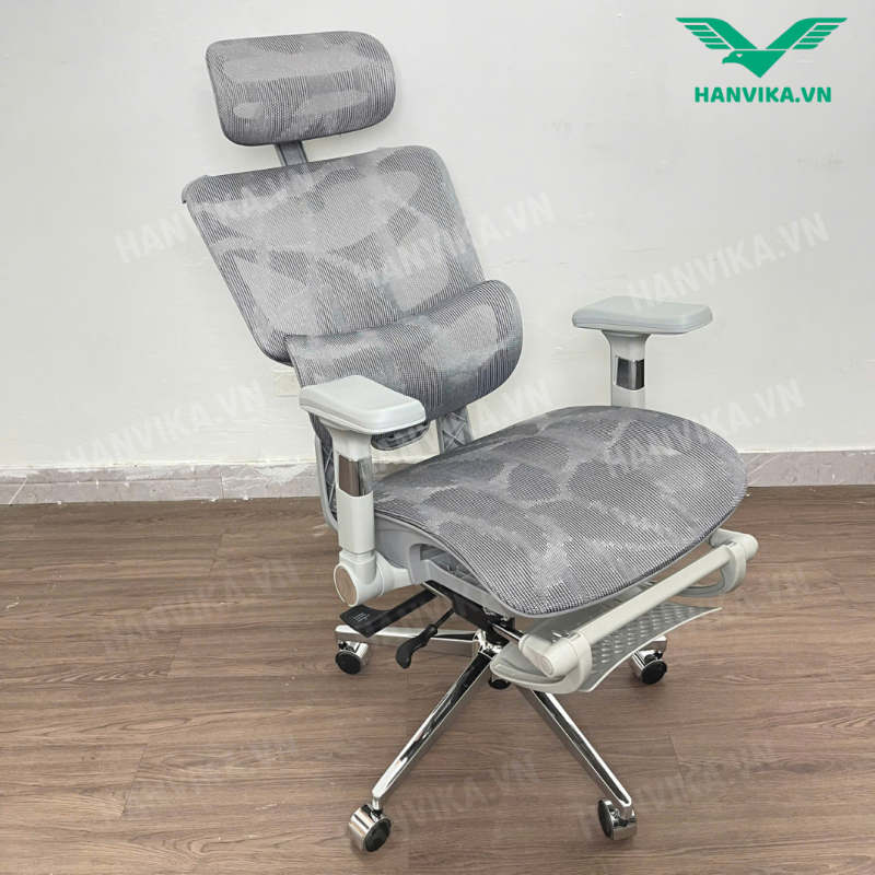 Ghế Công Thái Học Cao Cấp – Ghế Văn Phòng Full Lưới HVK-S23 Màu Ghi | Nội Thất Hanvika