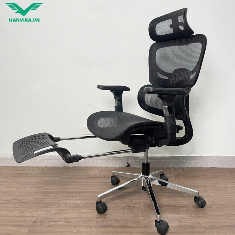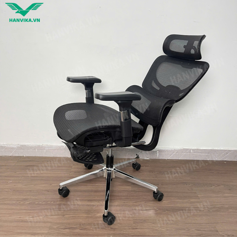 Lưu ý: Các sản phẩm ghế công thái học dòng HVK của Hanvika thường có tải trọng tối đa khoảng ~150kg, piston Class 4 và khung hợp kim chịu lực bền bỉ.